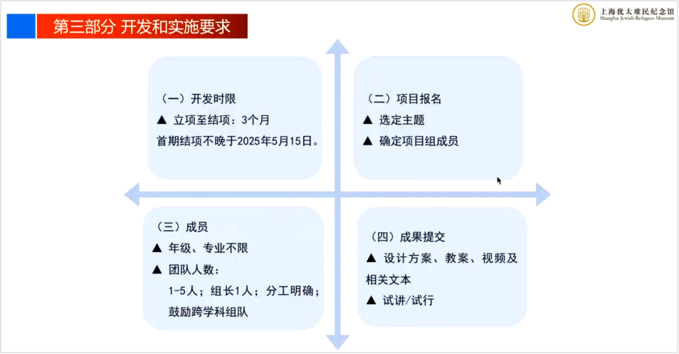 上海犹太难民纪念馆作为公共教育的重要阵地,期望与高校、中学合作共同开发基于提篮桥历史文化风貌区的跨学科综合实践活动课程。纪念馆常务副馆长李炜菁对本项目进行推介。