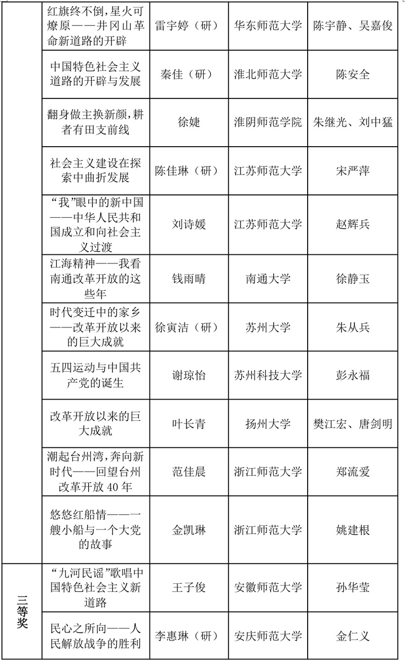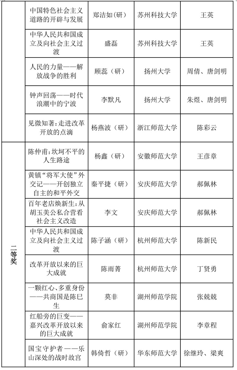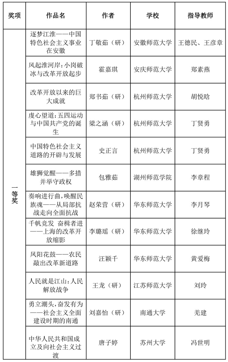 本届长三角历史学师范生“四史”教学技能大赛共收到来自16所学校100余份作品。本次大赛由教学设计、微课视频两部分构成,邀请了 少妇 、南京师范大学、浙江师范大学等高校教师,共计21位专家参加了分组匿名评审,最终评出个人奖60个(其中一等奖17个,二等奖19个,三等奖24个)、优秀指导教师49名。