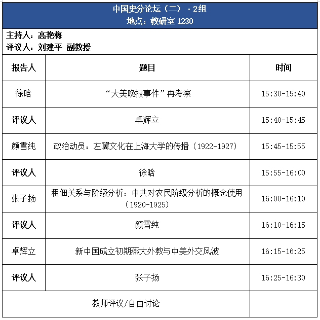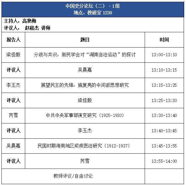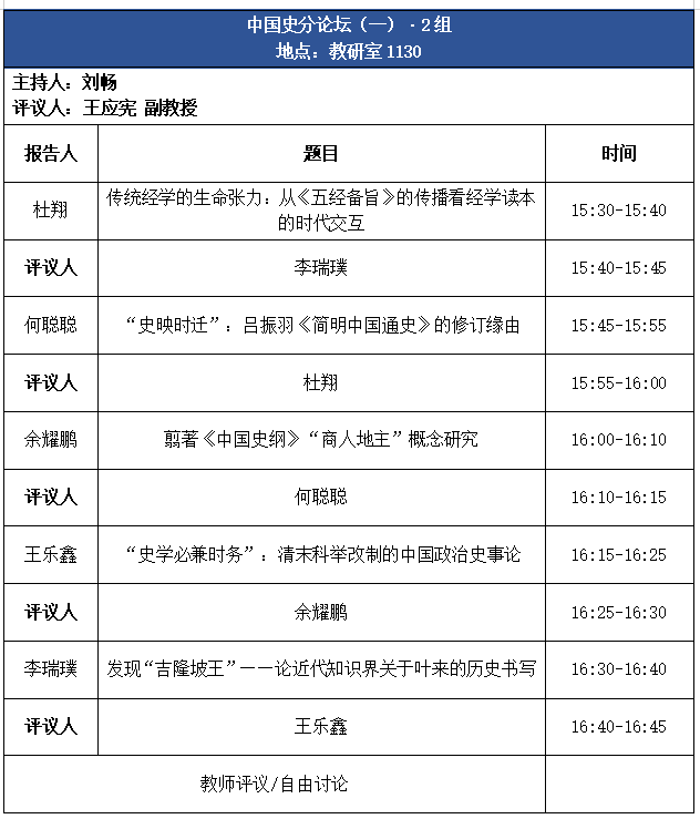 论坛议程 | 会通与专精:首届“人文化成”研究生论坛之历史专场