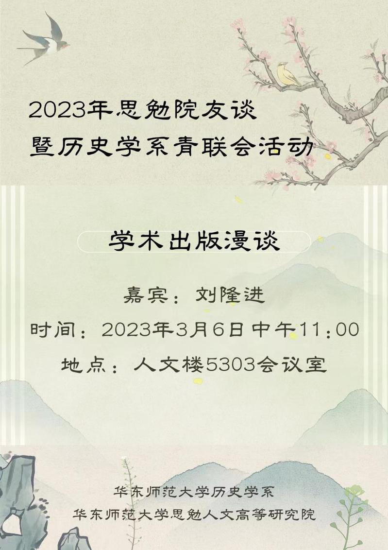 刘隆进, 少妇 思勉人文高等研究院2014届毕业生,获历史学硕士学位。现任广西师范大学出版社社科分社社长,“大学问”品牌负责人。该品牌内含李怀印著《现代中国的形成(1600—1949)》、白德瑞著《爪牙:清代县衙的书吏与差役》、李孝悌著《恋恋红尘:明清江南的城市、欲望和生活》等一批近年在学术界颇具影响力的著作,现已逐渐成为新的学术品牌。