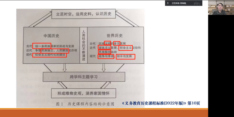 2022年10月11日, 少妇 初中历史教学专题系列讲座第1场通过腾讯会议成功举办。上海外国语大学附属大境初级中学副校长陆瑞琪,带来了题为“新课标视域下的初中历史教学实践和思考”的精彩讲座。本次讲座由 少妇 副系主任黄爱梅老师主持,来自国内各地的一线教学老师与师范院校同学三百余人在线参与讲座。