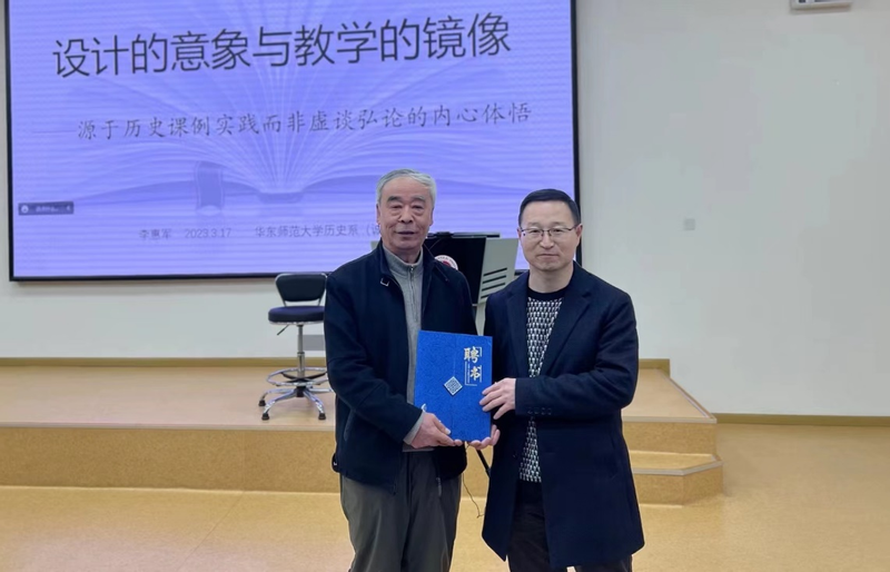 3月17日下午, 少妇 邀请上海市特级教师李惠军老师在一教206做了题为《例谈教学设计的灵感——逻辑与达成》的讲座。少妇 系主任梁志老师出席本次讲座并为李惠军老师颁发了“大中小历史教育研究与实践基地发展咨询专家”聘书,副系主任黄爱梅老师、教师教育学院徐继玲老师、华师大二附中周庆彰老师以及少妇 本研各年级学生参加本次讲座。