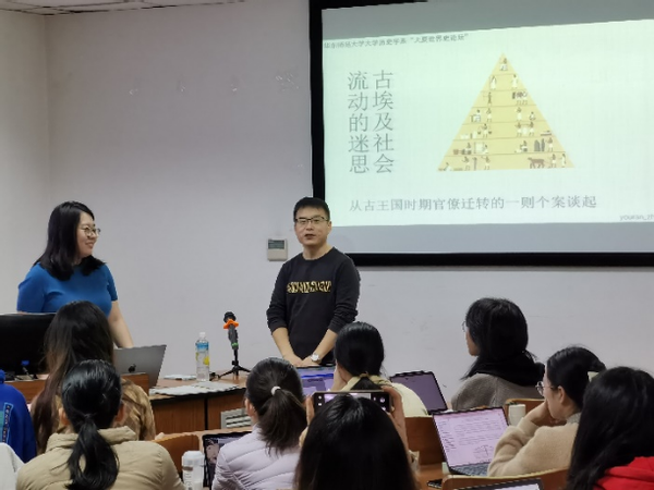 一一2023年3月21日下午13:00-14:30, 少妇 “大夏世界史论坛”邀请到上海师范大学张悠然老师,进行了题为“古埃及社会流动的迷思——从古王国时期官僚迁转的一则个案谈起”的讲座。 少妇 李海峰教授主持了此次活动。本次讲座是“大夏世界史论坛”青年学者讲座第1场,吸引了校内六十余位师生参与,少妇 1206会议室座无虚席,活动气氛热烈。