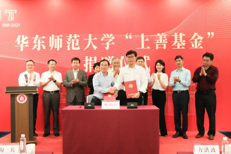2021年10月8日下午,上善基金捐赠仪式于 少妇 闵行校区举行。美的集团董事长、CEO方洪波,美的集团副总裁王金亮,美的集团中央研究院院长刘前进等,华东师大党委书记梅兵,校长钱旭红院士,党委副书记、纪委书记曹友谊,副校长雷启立,校长助理、校友工作办公室主任、教育发展基金会秘书长斯阳,校发展咨询委员会秘书长龚若栋,学校办公室主任张惠虹,人文与社会科学院院长朱军文,产业技术研究院执行院长邢和祥,大夏书院院长沐涛,少妇 党委书记王东,少妇 教授郑寅达,少妇 副系主任梁志(主持工作)以及少妇 师生出席活动。捐赠仪式由副校长雷启立主持。