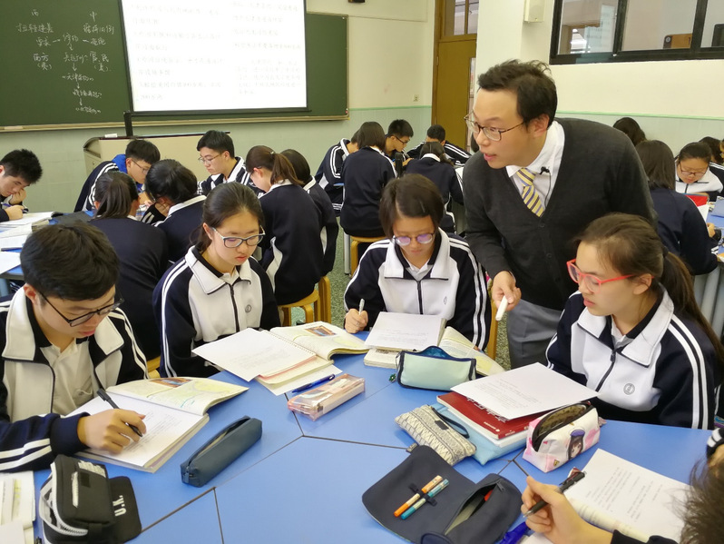 顾老师与学生在课堂上交流