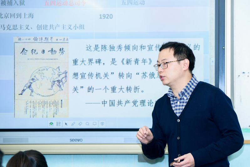 顾老师在给学生们上《五四运动与中国共产党的诞生》一课