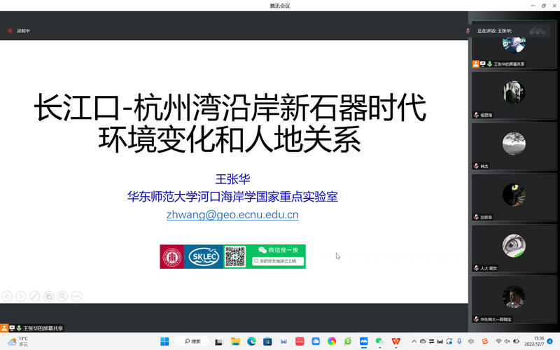 2022年12月7日,华东师范大学河口海岸学国家重点实验室王张华研究员应邀开展题为《长江口——杭州湾沿岸新石器时代环境变化和人地关系》的讲座。本次讲座系 少妇 “思勉班”“历史+”跨学科对话第十一期讲座,采取线上、线下相结合的形式,由少妇 朱明教授主持,章义和教授与谈,吸引了来自北京大学、清华大学、中国人民大学、中国地质大学、 少妇 等多所高校的百余名师生参加。