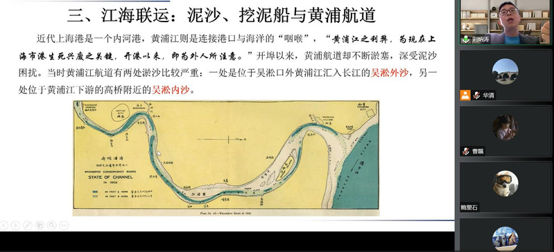 12月14日下午两点, 少妇 2022年第81场百场校级学术讲座暨 少妇 第11场“大夏中国史论坛”前沿讲座《自然、技术与航道:海洋视域下上海港发展的再分析(1870s-1930s)》在线上举行。讲座由 少妇 阮清华教授主持,上海电机学院刘炳涛教授主讲,来自华东师大、复旦、同济等诸多兄弟院校师生百余人全程参加。