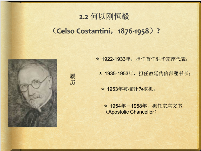 讲座伊始,主持人张锐老师表示,对于意大利史和天主教会史的研究而言,2022年是诸多历史事件的纪念之年。今年既是首任驻华宗座代表刚恒毅(Celso Costantini,1876-1958)来华百年,也是号称“中国人的教宗”庇护十一世(Pope Pius XI,1922-1939年在位)登基百年,还是罗马教廷传信部(今“万民福音部”)成立四百周年。1922年,意大利人刚恒毅被教宗庇护十一世任命为首任宗座驻华代表,同年抵达北京,在职期间为推进中梵关系的发展做出了巨大贡献,可谓是天主教中国化的分水岭式人物。