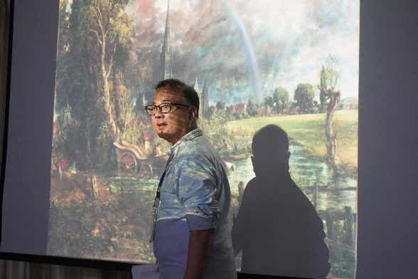 18世纪英国风景画巨匠透纳和康斯太勃的作品是此次讲座分析的重点。顾老师指出,他们二人的创作实际上是欧洲浪漫主义艺术崛起的组成部分。浪漫主义绘画不仅提倡表现当代的主题与刻画人物内心世界和情绪,而且主张对自然的臣服和敬畏。透纳与康斯太勃画风不同,前者波澜壮阔,后者和平宁静,它们不仅在英国绘画史上享有独特的地位,对于法国的巴比松派和早期印象派画家也有着不可磨灭的影响与启发,后者包括科罗、毕沙罗、莫奈、西斯莱、塞尚与梵高。