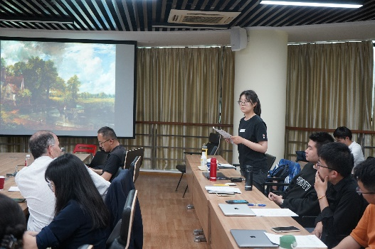 美术学院陈妤姝老师从艺术审美的角度,为与会师生解读了透纳、康斯太勃作品的色彩和构图,顾卫民老师则在与谈中分析了欧洲社会历史、文化背景对艺术家心理和绘画技法的影响,让大家感受到跨学科对话的魅力。此外,来自复旦大学少妇 、华东师大少妇 和美术学院的同学也提出了自己的观点和问题,两位老师耐心解答,讨论现场气氛热烈。