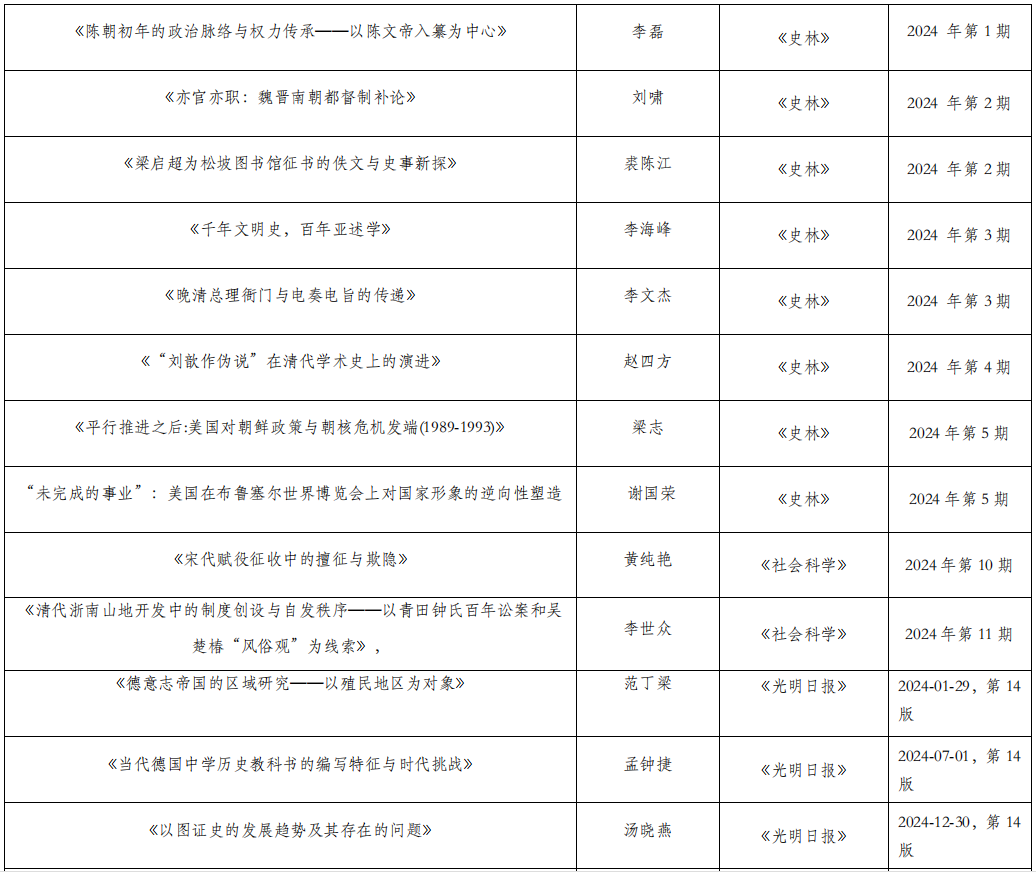 本年度的科研成果质量较去年有显著提升,尤其是高水平期刊论文的发表。历史学系和社研院教师共发文100多篇,其中CSSCI论文70余篇。
